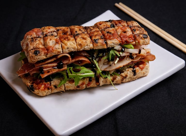 Pesto, mortadela, mozzarella, rukola, reducirani accetto